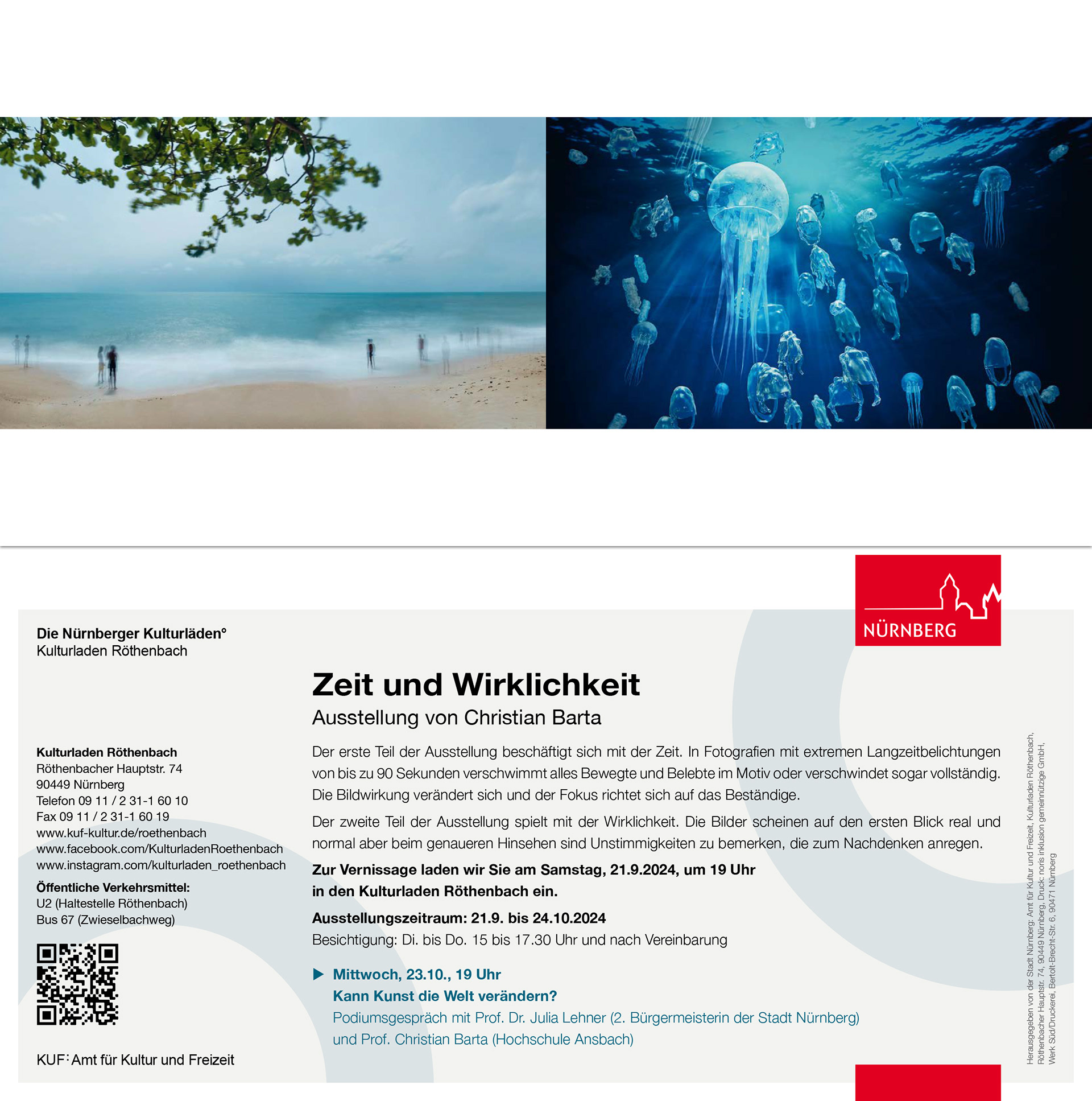 Vom 21.9. bis 24.10.2024 zeigte ich eine Auswahl photographischer Arbeiten in den Ausstellungsräumen des Kulturladens Röthenbach in Nürnberg.