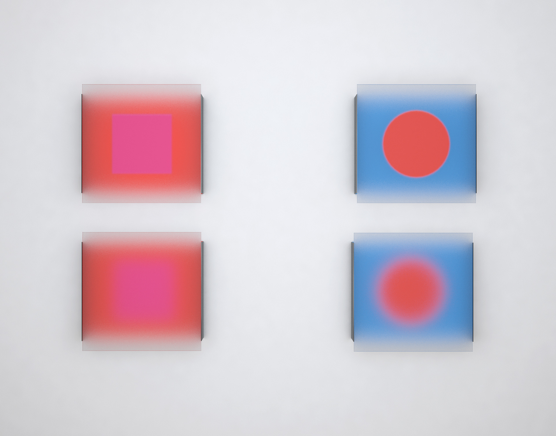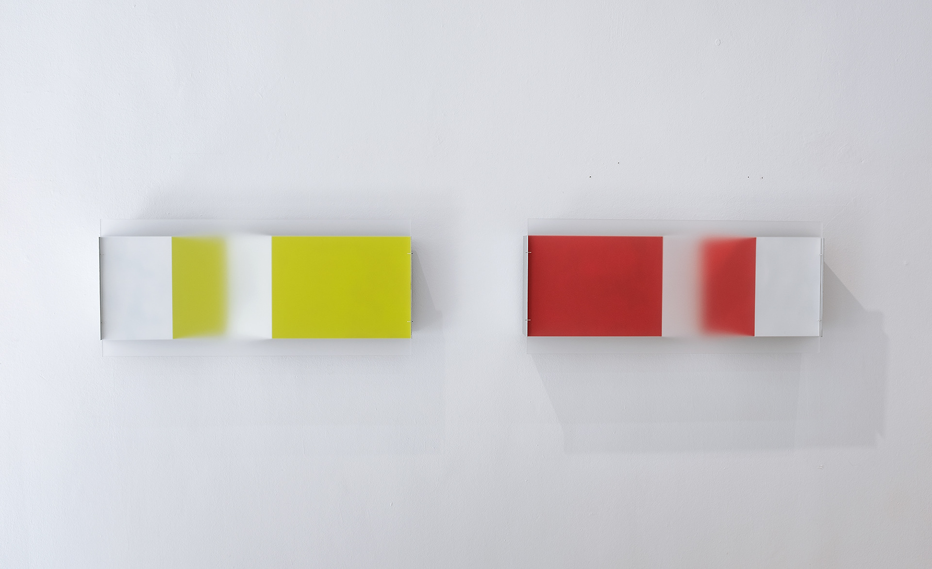 Farbobjekte aus Aluminium - Lack - Acryl die mit der Tiefenwirkung sowie Schärfe und Unschärfe spielen.